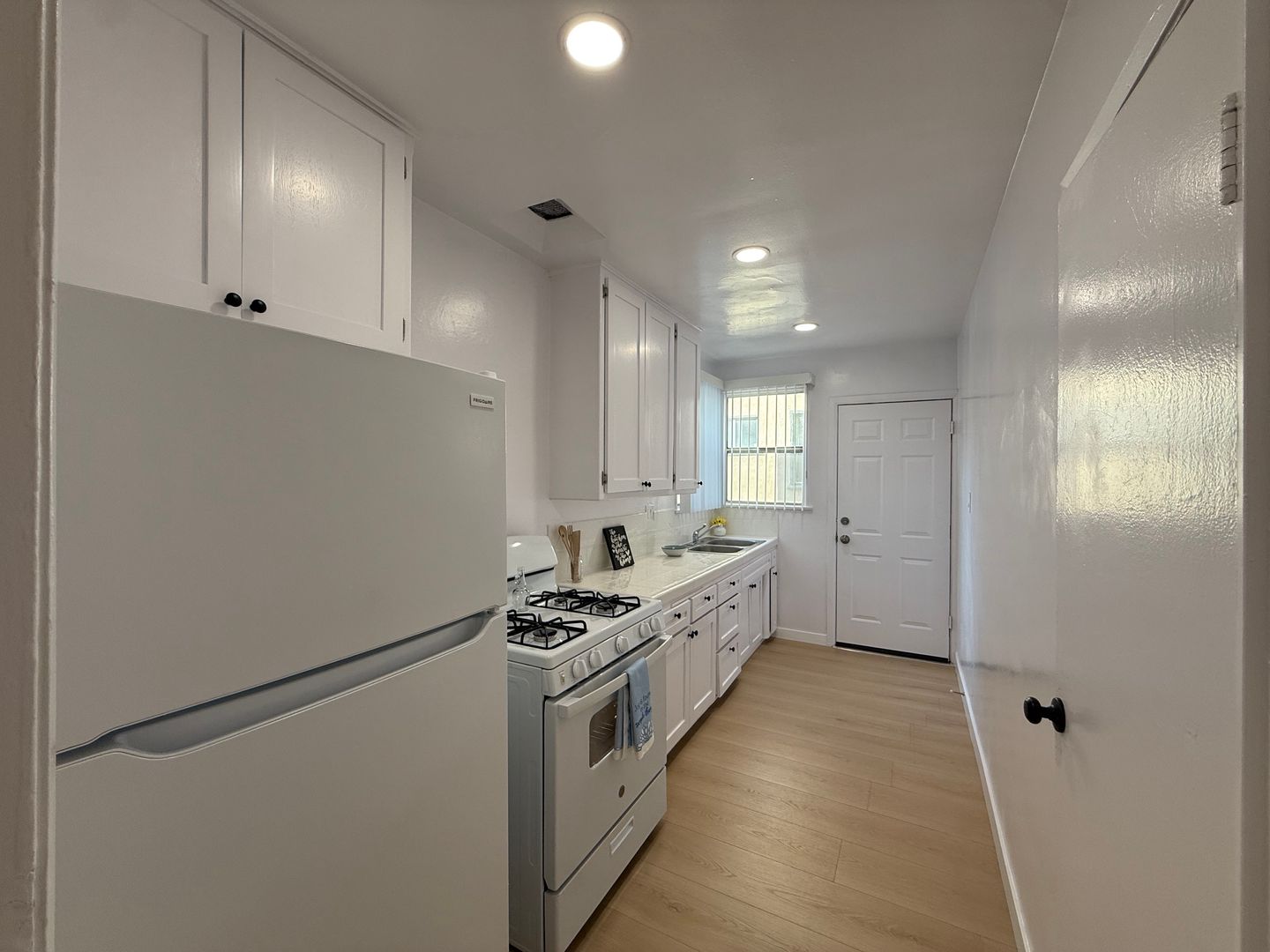 Welcome to 7339 Woodman, a charming one-bedroom, one-bathroom apartment located in the heart of Van Nuys, CA. This ground floor unit is a perfect blend of comfort and style, featuring beautiful wood floors and modern recessed lighting. The kitchen is equipped with a stove and stunning granite countertops, while the bathroom boasts a new bathtub/shower. The apartment also features new double glass storm windows, ensuring energy efficiency. The building is a secure, gated community with security cameras for added peace of mind. Pet owners will appreciate the pet-friendly environment and the dedicated dog walk area. The apartment also offers convenient laundry facilities and a laundry room within the unit. The front and back doors provide easy access to the beautifully maintained garden, with gardening services included. Enjoy the comfort of a wall A/C during those warm California days. Experience the best of Van Nuys living at 7339 Woodman.
